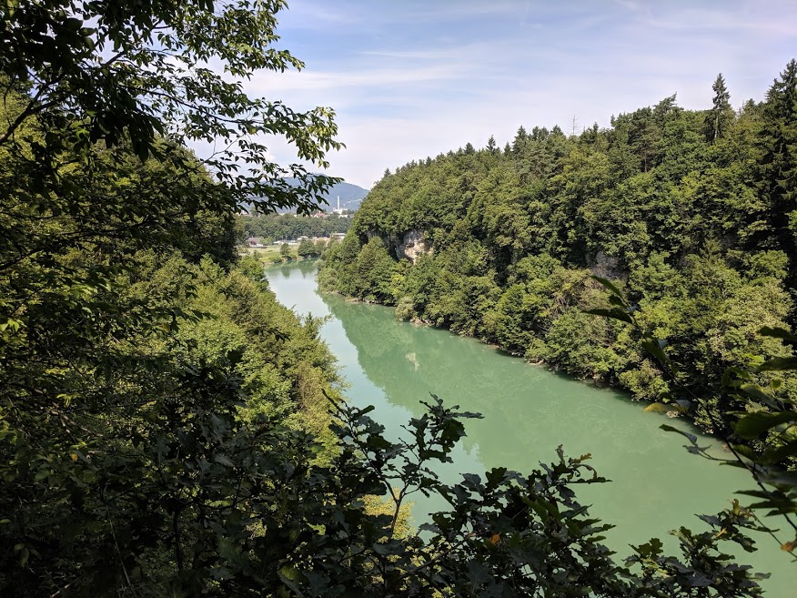 fiume che scorre e alberi intorno